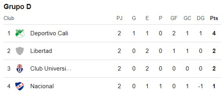 Las azules están en el tercer lugar del Grupo D con dos puntos, los mismos que Libertad y dos menos que el líder Deportivo Cali.
