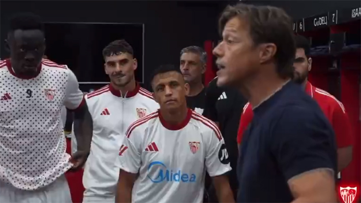 Pero no solo eso. También se viralizó otro video de la charla de Almeyda con sus jugadores en el entretiempo, cuando el Sevilla ganaba 2-1. Eso sí, el elenco andaluz había sufrido el descuento en los últimos minutos de la primera etapa y había sido muy superior.