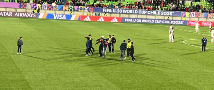 Ante el aliento del público, algunos eludieron a los guardias que corrían tras ellos, pero finalmente todos abandonaron el campo.