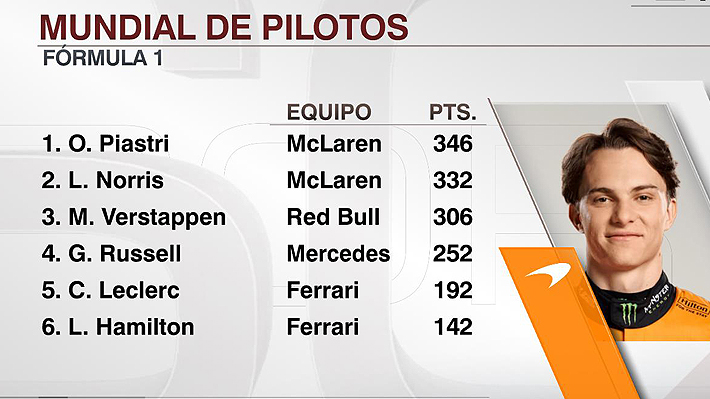 Verstappen mete presión en la lucha por el título, algo que parecía imposible hace unas carreras atrás. Piastri lidera con 346 puntos, catorce más que Norris y con 40 sobre el neerlandés; a falta de cinco Grandes Premios para el final.