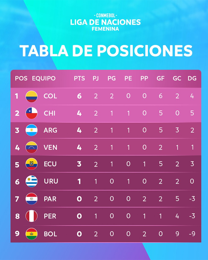 delante de Argentina y Venezuela, que tienen 4 unidades también pero peor diferencia de gol.