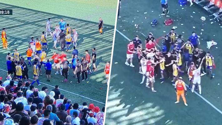 Tras el 3-0 de Ignacio Herrera sobre el cierre, se armó una tremenda pelea entre ambos equipos, luego de un festejo muy airado del cuadro auricielo que fue tomado como una provocación.