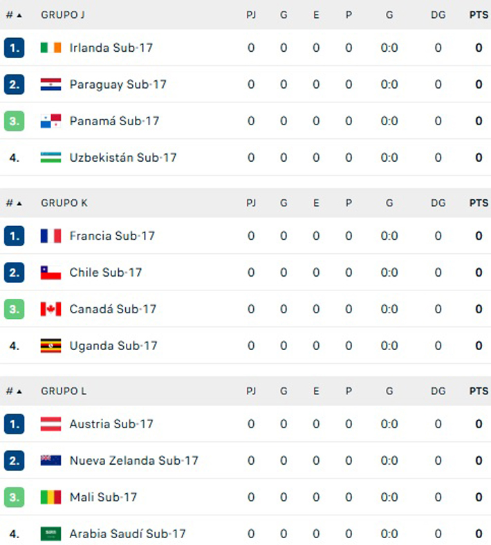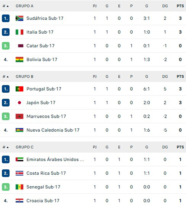 Este Mundial Sub 17 tiene un formato inédito. Hay 48 equipos divididos en 12 grupos. Clasificarán a la siguiente fase los dos mejores de cada zona y los ocho mejores terceros.