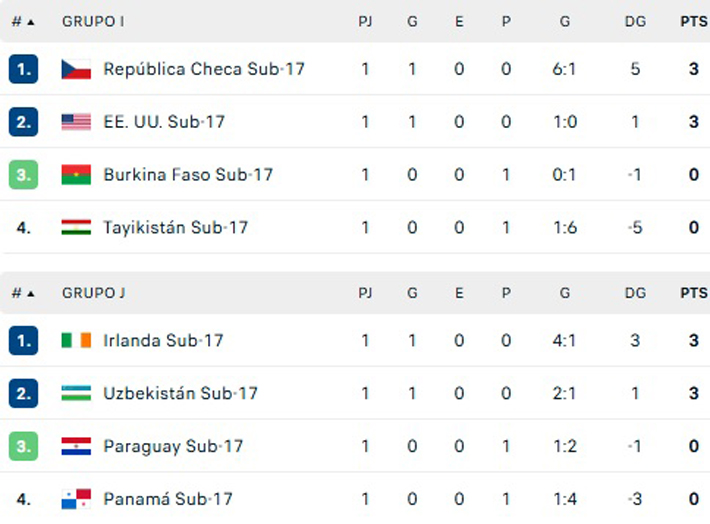 La de los irlandeses no fue la única goleada de la jornada. República Checa derrotó 6-1 a Tayikistán. En el otro duelo del Grupo I Estados Unidos le ganó 1-0 a Burkina Faso.