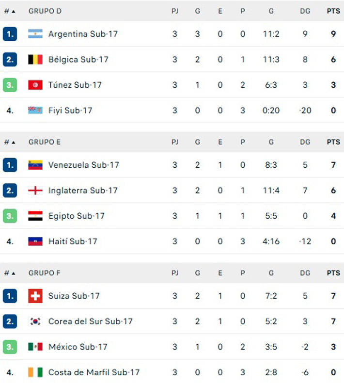 Este lunes, Venezuela le ganó 4-2 a Haití y finalizó líder del Grupo E con siete puntos. Segundo fue Inglaterra con seis unidades. Los "Three Lions" en esta jornada vencieron 3-0 a Egipto. Pese a la derrota, los "Faraones" aseguraron ser uno de los mejores terceros con cuatro positivos.