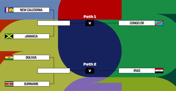 Entonces, Irak esperará al ganador entre Bolivia y Surinam, mientras que el Congo aguarda por el vencedor entre Nueva Caledonia y Jamaica.
