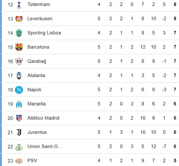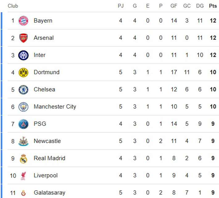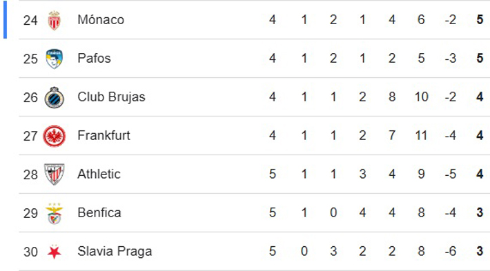 Hay que recordar que en este formato de Champions los ocho primeros de la tabla avanzan directamente a octavos de final, mientras que los elencos que terminen entre el 9° y el 24° disputarán un playoff para seguir en el torneo de clubes más importante del mundo.