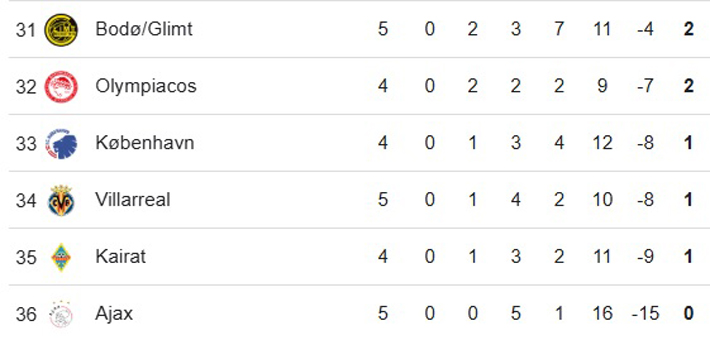 La Juventus en esta jornada consiguió una victoria muy valiosa. El gigante italiano derrotó como forastero al Bodø/Glimt por 3-2. Era muy importante el triunfo para la "Vecchia Signora", ya que finalizó la fecha anterior fuera de la zona de clasificación a la siguiente fase. Ahora es vigésimo primero.
