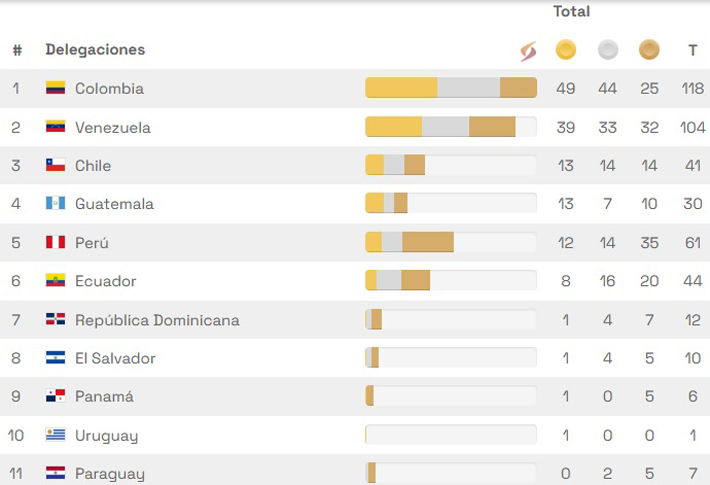 Con las preseas de esta jornada, Chile llegó a 41 y sigue en el tercer lugar del medallero por detrás de Colombia (118 metales) y Venezuela (104).