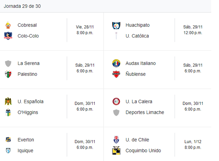En la última fecha, los colocolinos recibirán a Audax y los nortinos visitarán a Ñublense.