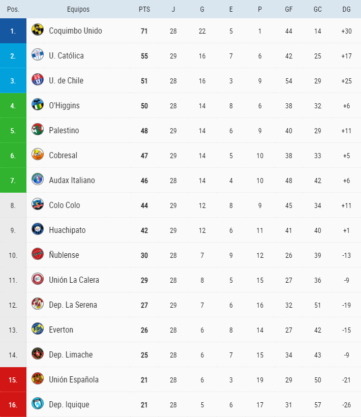 Así se juegan las dos últimas fechas por el descenso y repasa la tablaFecha 29: Domingo 30 de noviembre, 18 horasUnión Española-O'Higgins