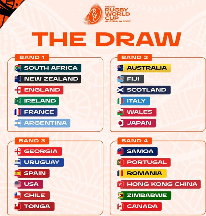 Australia, por ser el anfitrión, quedará en el Grupo A pese a que no es del bombo 1. Además, se aseguran jugar el partido inaugural en la sede de Perth, el 1 de octubre de 2027.