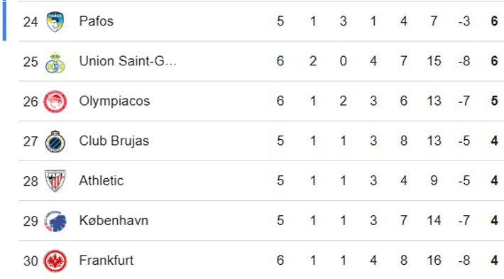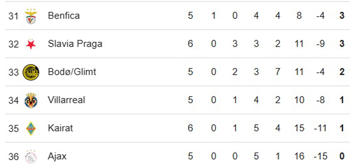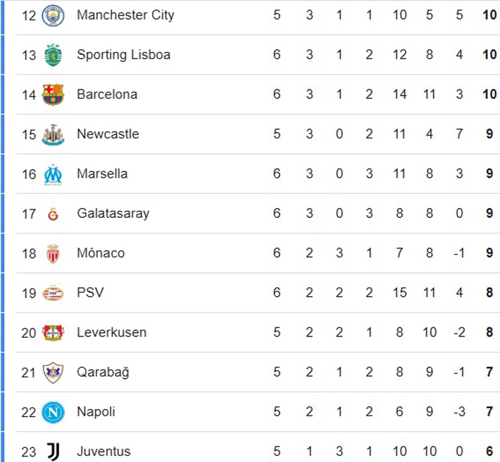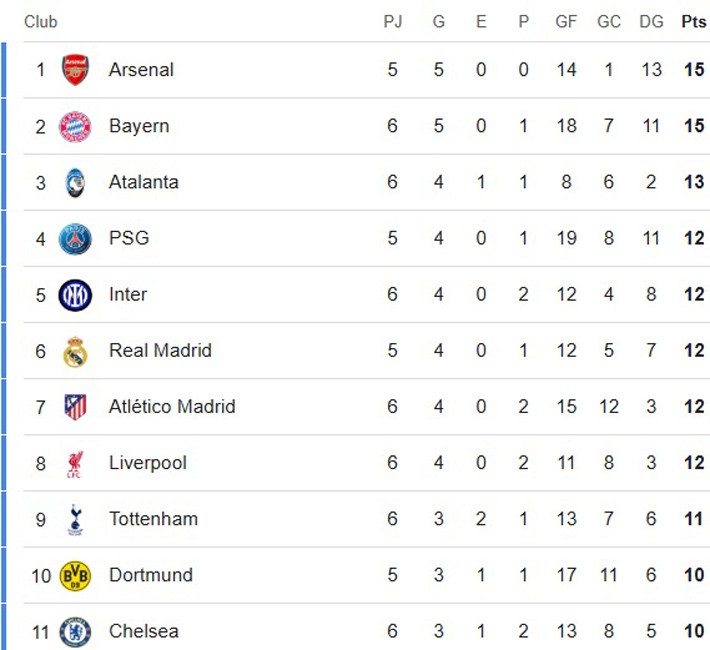 Revisa la tabla de posiciones de la Champions