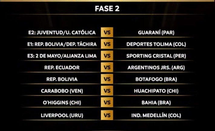 Coquimbo Unido (Chile 1) y Universidad Católica (Chile 2) clasificaron directamente a la fase grupal. Conocerán sus rivales en el sorteo que se realizará en marzo.