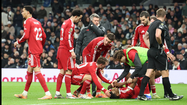El delantero de 26 años se lesionó el sábado al ser derribado de forma temeraria por el defensa del Tottenham, Micky van de Ven, y abandonó el campo cojeando tras haber marcado el primer gol en la victoria 2-1 del Liverpool.