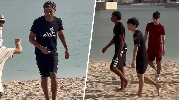 Mira a Lamine Yamal jugando en la playa en Dubai
