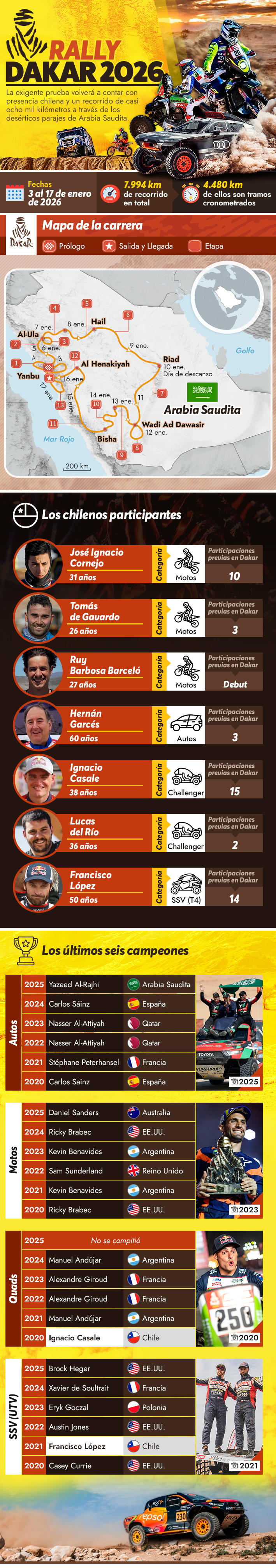 Rally Dakar 2026: Cómo es el recorrido en esta edición y quiénes son los chilenos que participan