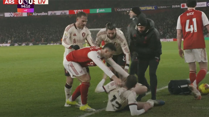 mientras que Martinelli recibió una tarjeta amarilla, lo que provocó una airada reacción de los jugadores del Liverpool.