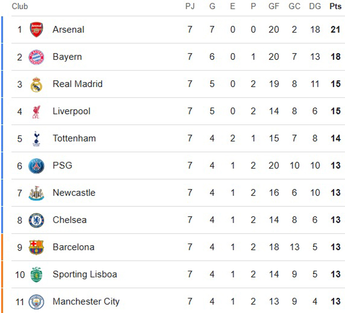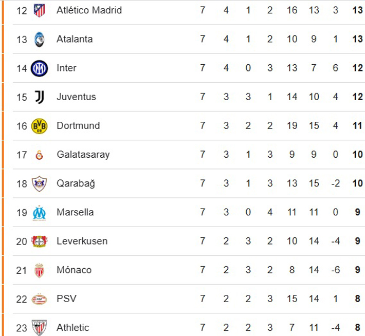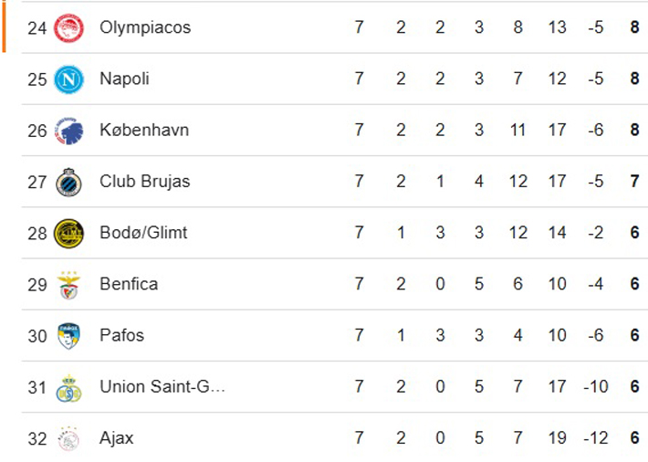 Hay que recordar que los ocho primeros de la clasificación pasan directo a octavos de final, mientras que aquellos elencos que terminen entre el 9° y el 24° puesto disputarán un playoff para seguir en el torneo continental.