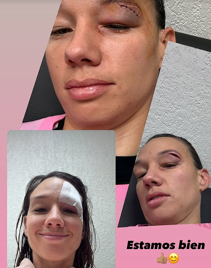 La arquera recibió cinco puntos de sutura y acompañó la publicación con un breve mensaje: "Estamos bien".