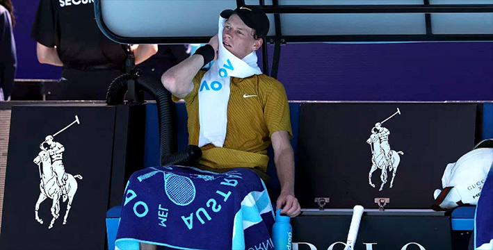 Jannik Sinner el sábado durante otra jornada en Australia con altas temperaturas. | AFP