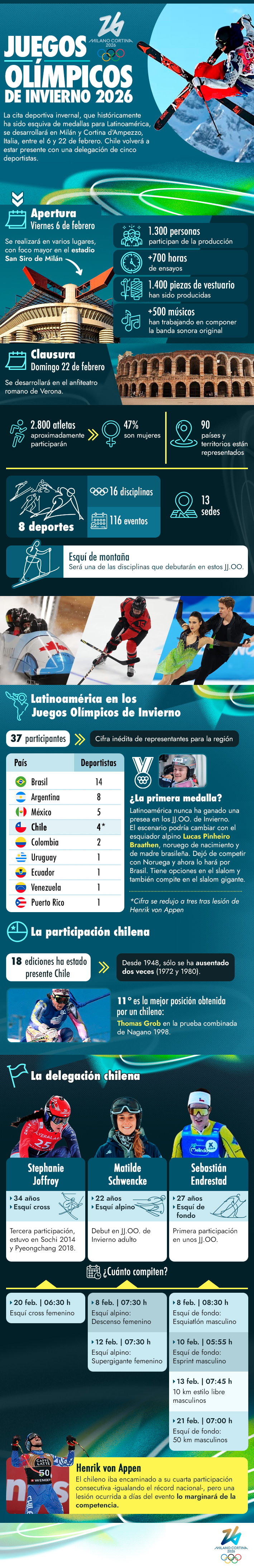 Este viernes es la inauguración de la cita olímpica invernal que se desarrollará hasta el 22 de febrero en Milán y Cortina d'Ampezzo.