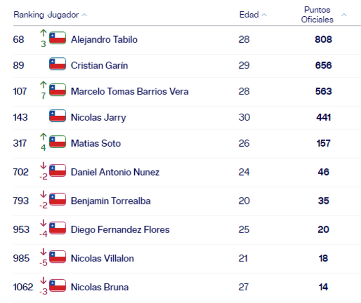 Alejandro Tabilo sigue siendo la raqueta N°1 de Chile. Tras los cuartos conseguidos en Buenos Aires, trepó del 71° al 68°.
