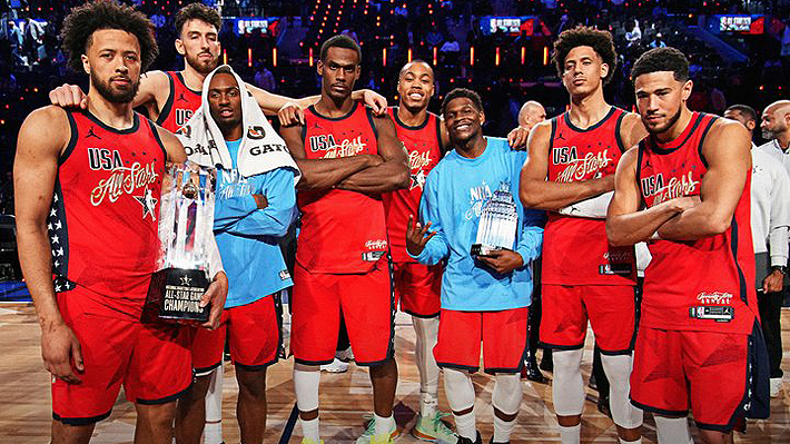 El All Star 2026 introdujo un sistema inédito. Tres equipos, dos conformados por jugadores estadounidenses (Stars y Stripes) y uno integrado por figuras internacionales (World), disputaron un triangular para luego definir al campeón en una final directa.