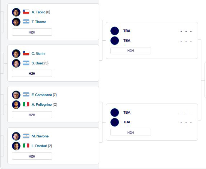En segunda ronda, Garín se enfrentará este jueves no antes de las 18:30 horas al argentino Sebastián Báez (52°). Este último fue campeón del ATP de Santiago el año 2023, han jugado en tres oportunidades, dos victorias para el trasandino y una para el chileno.