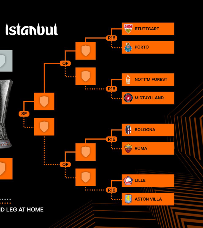 ¿Cuáles son los otros enfrentamientos de esta Europa League? Genk vs Friburgo, Celta vs Lyon, Bologna vs Roma y Lille vs Aston Villa.