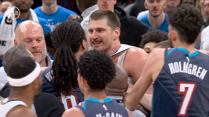 La decisión no dejó conforme a Dort, quien evidenció su molestia. Jokic se levantó y encaró a su rival. Intercambiaron palabras y se produjo un forcejeo entre el serbio y Jaylin Williams, quien intervino para defender a su compañero, antes de que jugadores de ambos equipos intentaran separarlos, generándose empujones y reclamos en el centro de la cancha.