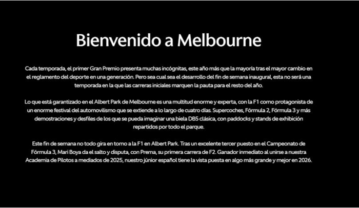 Además dejaron muchas interrogantes con el inicio de temporada: "Sea cual sea el desarrollo del fin de semana inaugural, esta no será una temporada en la que las carreras iniciales marquen la pauta para el resto del año", añadieron.