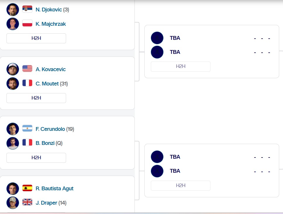 Y en cuartos de final están por ese sector Novak Djokovic (3°), Jack Draper (14°, campeón defensor) o Francisco Cerúndolo (20°). En semifinales estaría Alcaraz como el principal oponente.
