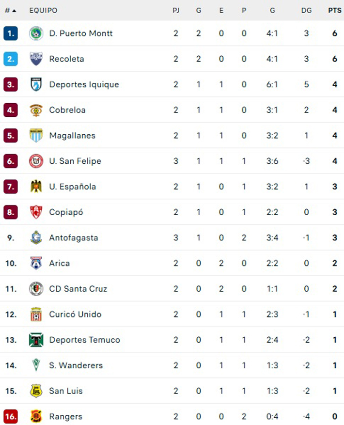 Hay que recordar que Deportes Puerto Montt y Deportes Recoleta son líderes. Tienen seis positivos.