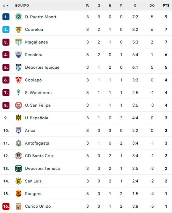 Terminada la tercera jornada, Curicó y Rangers están en el fondo de la tabla. Ambos registran solo un punto.