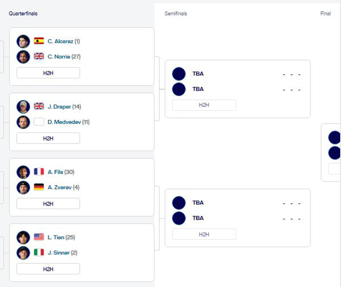 Jack Draper (14°) vs. Daniil Medvedev (11°).
