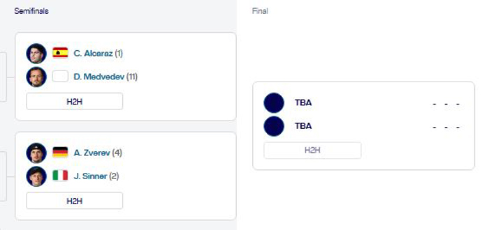 Carlos Alcaraz (1°) vs. Daniil Medvedev (11°).