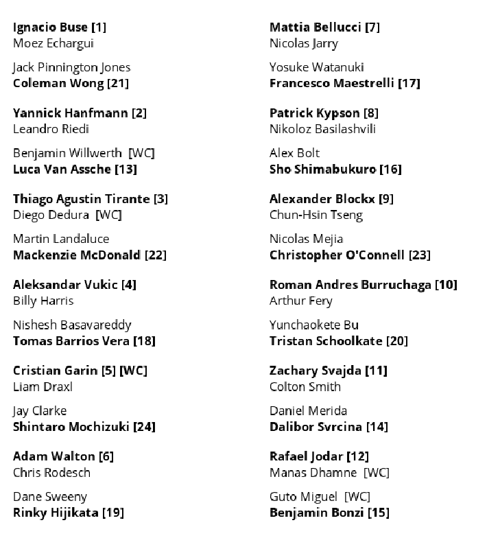 También que destacar la presencia del alemán-chileno Diego Dedura (291°), de solo 17 años y que fue invitado a la clasificación. Se verá las caras con el argentino Thiago Tirante (74°), cuarto favorito.