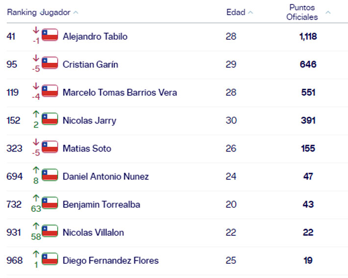El ranking de los chilenos