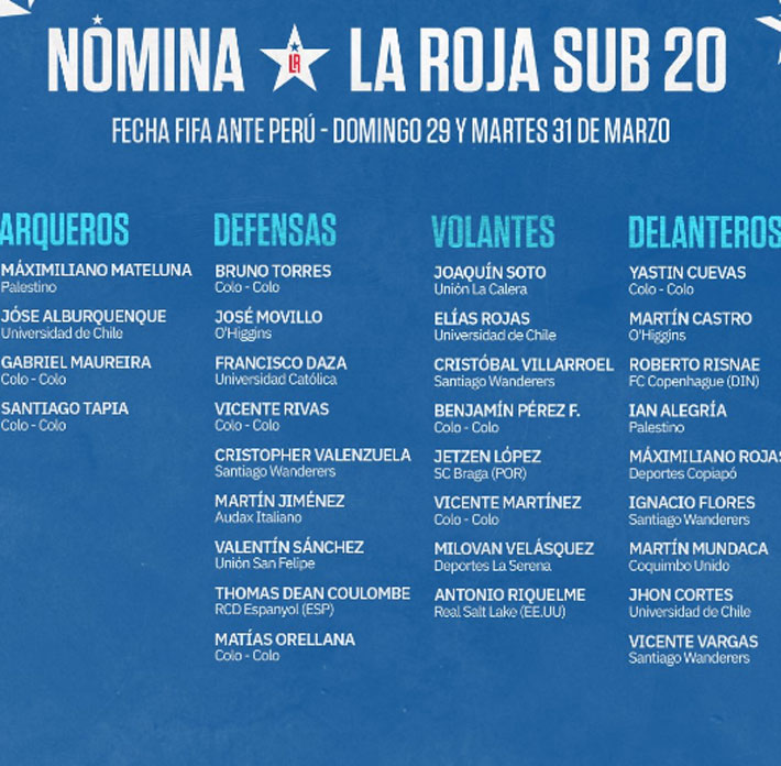 La nómina de la "Roja" Sub 20