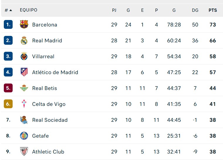 De esta forma, el Betis llegó a cinco encuentros sin ganar en la Liga, pero de momento sigue quinto en la tabla de posiciones con 44 puntos, tras más que el Celta (6° con 41), y en puestos que llevan a la Champions League.