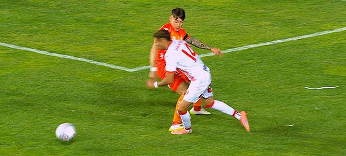 "Me pisó, me pisó. Me pisó", gritraba desesperado luego de recibir la cartulina roja. Las imágenes le dieron la roja. El juez principal se equivocó, pero en la B, ya es sabido, no existe el VAR.