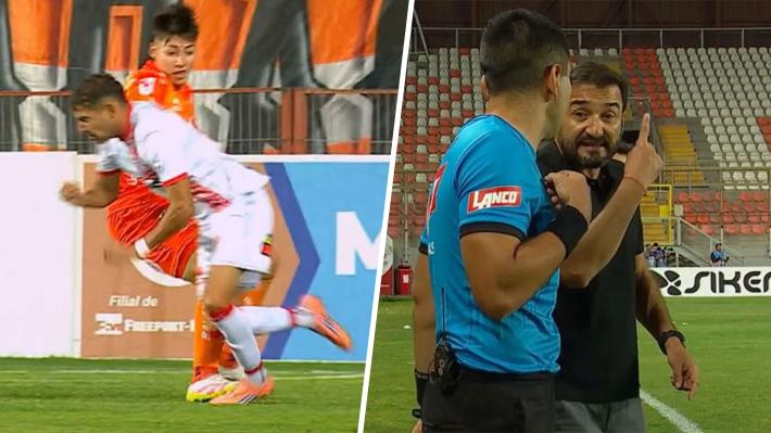 La jugada indignó al técnico Landeros, quien se fue con todo a reclamarle al cuatro árbitro.