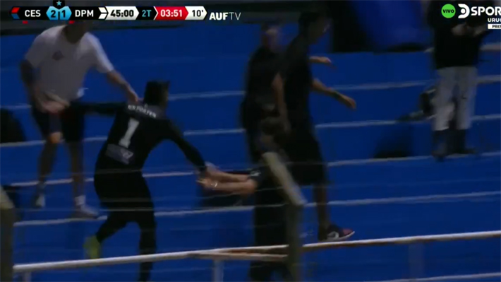 El portero explotó, pero lo que siguió no se lo esperaba nadie: Apuntó a un hincha e increíblemente abrió la reja de la galería y se metió a las tribunas a pelearse con el fanático.