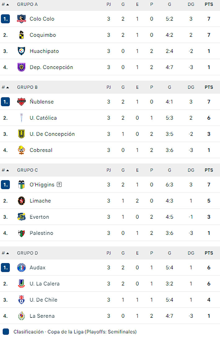 ¿Cómo se estarían jugando las semis hoy? Colo Colo por el Grupo A, Ñublense por el B, O'Higgins por el C y Audax por el D.