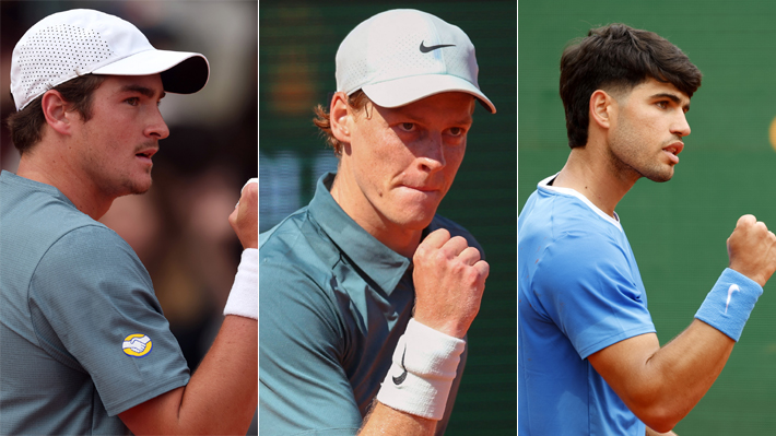 Joao Fonseca, Jannik Sinner y Carlos Alcaraz.