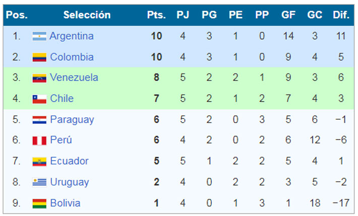 Actualmente la selección que dirige Luis Mena marcha cuarta con 7 puntos. Está agarrando el último cupo al repechaje. Su rival está segundo con 10, las mismas unidades que el líder Argentina, que tiene mejor diferencia de goles.