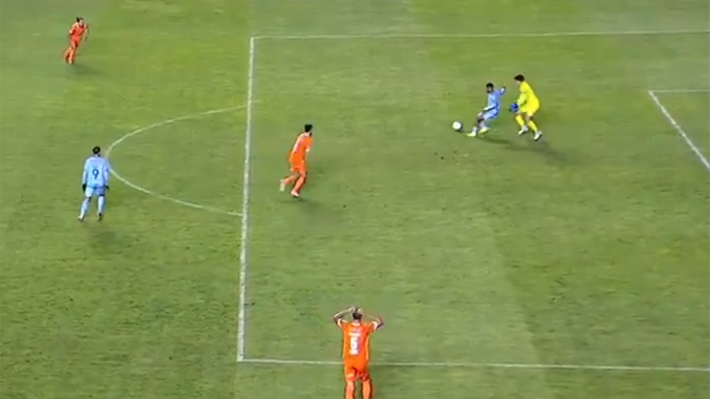 A los 79', Dorny Romero sorprendió a todos. El extremo del Bolívar "se escondió" detrás del arquero rival cuando iba a sacar, le robó la pelota y anotó el empate.