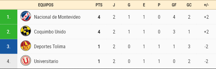 Ahora, el equipo que dirige Hernán Caputto tendrá que visitar a Tolima el martes 28 de abril. El elenco colombiano tiene solo 1 punto tras igualar sin goles ante Universitario en el debut. Luego, perdió 3-1 con Nacional.
