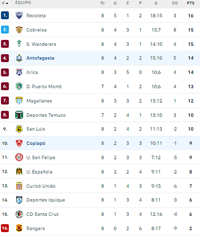 Esto, porque Antofagasta aprovechó la caída de Cobreloa y el empate de Recoleta para acercarse a la cima, tras vencer como local a Copiapó.